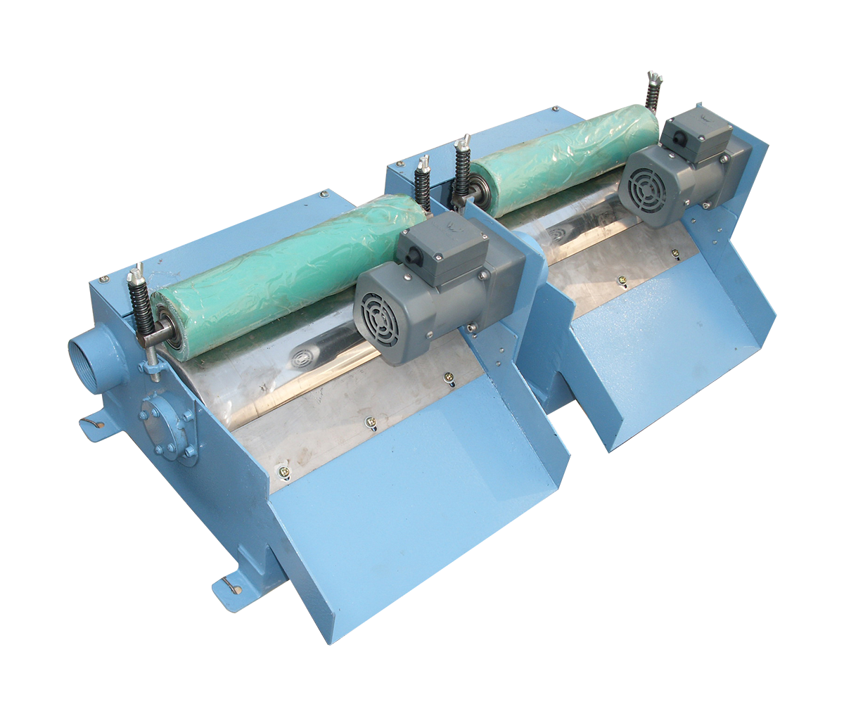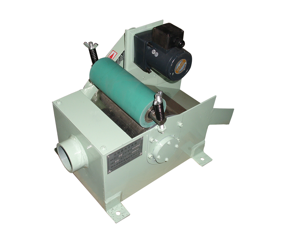 BXCF系列磁性分離器由減速機、箱體、磁輥、膠輥及刮屑板等幾部分組成。減速機帶動磁輥作回轉(zhuǎn)運動,含有粉末狀吸磁雜質(zhì)的冷卻液進入箱體后,雜質(zhì)被吸附到磁輥上,經(jīng)過膠輥的碾壓,將雜質(zhì)中含有的液體擠出,再由刮屑板將雜質(zhì)與磁輥分離。